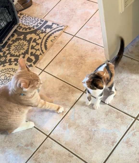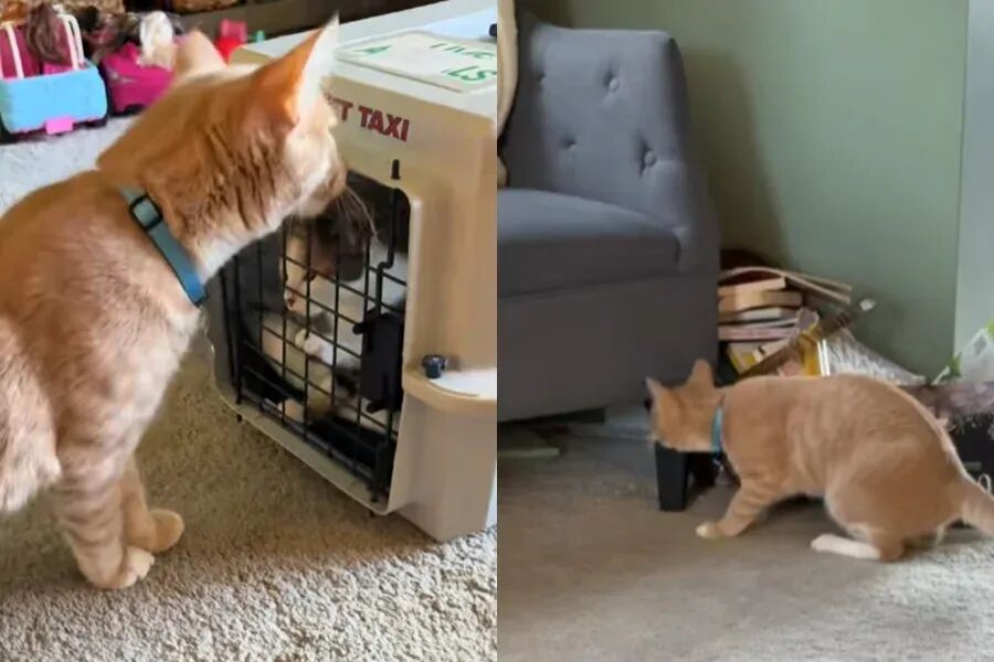 事情是这样的,美国有个叫奥莉维亚・吉尔布莱德(Olivia Gilbride)的小姐姐,本来打算从收容所临时收养一只叫花生(Peanut)的三花小奶猫。等花生长大能做绝育,再把它送回收容所。可她家养的原住民猫猫起司(Cheddar),好像不乐意这么干。